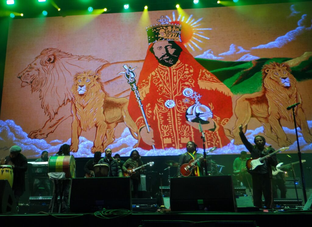 The five brothers and sons of Bob Marley all on stage with a huge backline band and a trio of strong backup singers to add to the harmonies that you expect when performing Bob Marley songs. The set started with Ziggy Marley singing just that Rastaman Vibration. The vibrations coming from the stage from the photo pit were intense! So intense I had to quickly put in some foam ear protection. Ziggy has been playing his father’s music for years and really does an outstanding job of looking and sounding like Bob. There’s no competition here between brothers. The vibes on stage felt genuinely brotherly with love in their hearts for their father’s legacy and a celebration of the music that continues to inspire and embrace Bob’s visionary life.